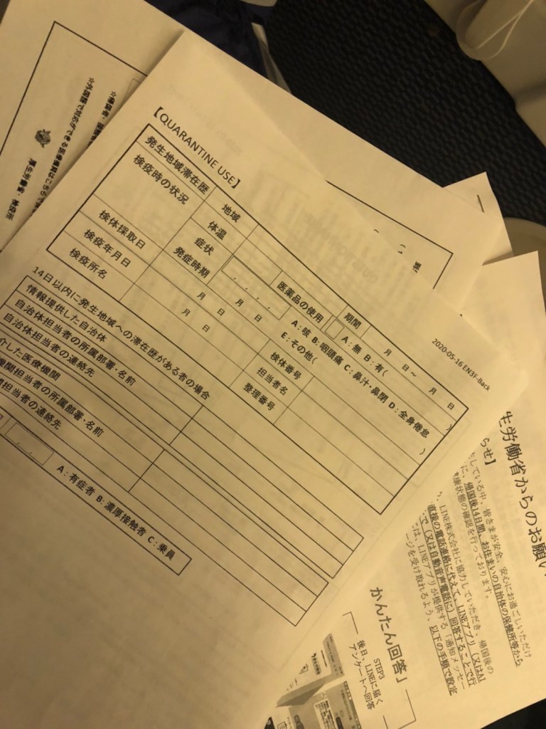 この写真は、日本に帰国する際、飛行機で配られる書類だそうです。