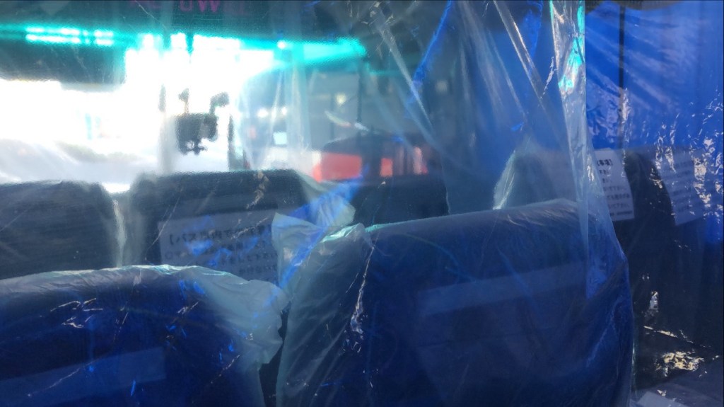 これは、空港の待機場所から政府が用意したホテルに向かう際に乗った時のバスのようです。