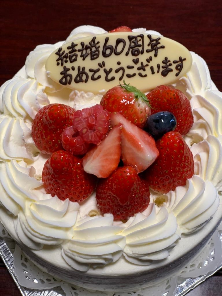 この写真は、おじいちゃんおばあちゃんの結婚60周年のお祝いの時のケーキです。