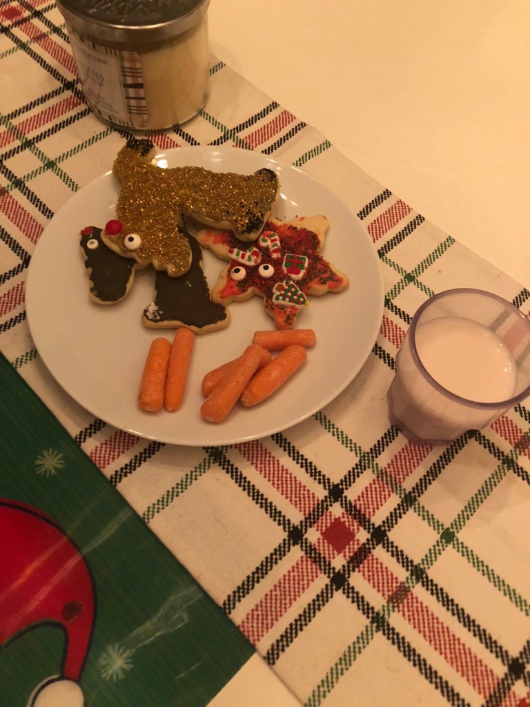 これは、夜寝る前に、サンタクロースとトナカイ用にテーブルに準備したものです。